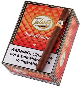 Tatiana Classic Harvest Moon cigars made in Dominican Republic. Box of 25. Free shipping! Strength: Mellow, Shape: Corona, Size: 6 x 44, Country: Dominican Republic, Color: Natural, Flavor: Pumpkin Spice, Wrapper Origin: Indonesian, Wrapper Leaf: Sumatra.